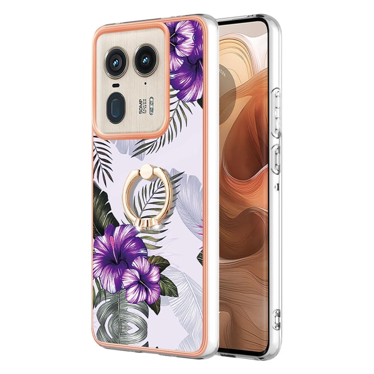 Funda TPU a Prueba de Golpes Motorola Edge 50 Ultra con Soporte Anillo Diamantes (Flor Morada)