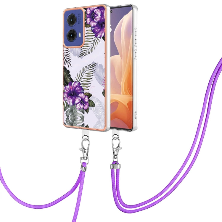 Funda TPU a Prueba de Golpes con Patrón Galvanoplastia IMD para Motorola Moto G85 con Cordón (Flor Morada)