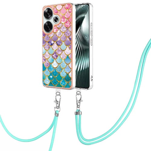 Funda a Prueba de Golpes con Patrón de Galvanoplastia Imd TPU para Xiaomi Poco F6 5G con Cordón para El Cuello (Escamas de Colores)