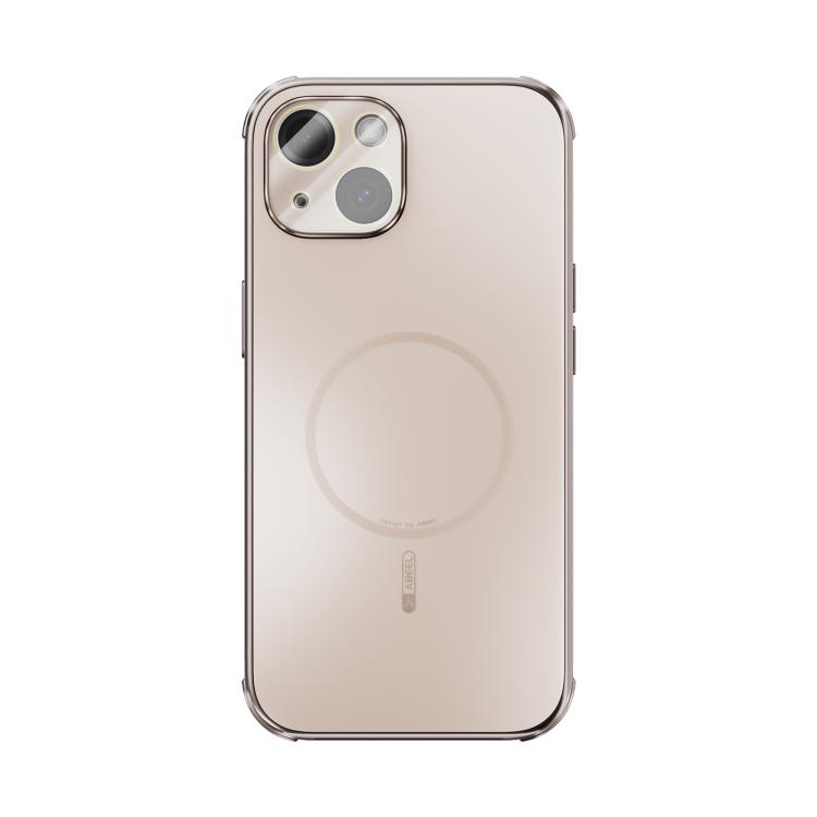 Funda ABEEL MagSafe esmerilada con disipación de calor y película para lente para iPhone 14 (oro rosa)
