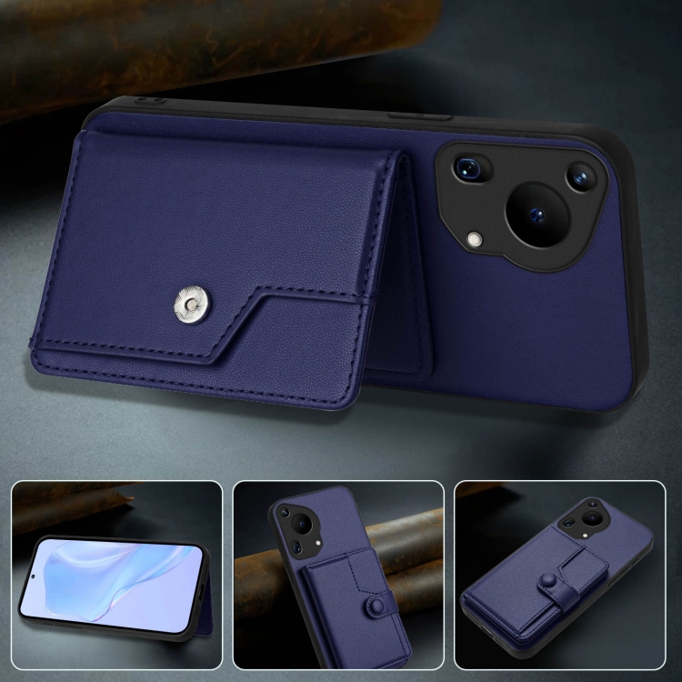 Funda Antirrobo RFID para Huawei Pura 70 Ultra con Botón y Tarjetero (Azul)