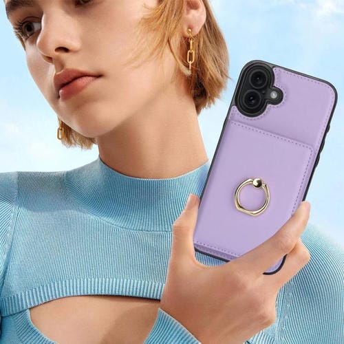 Funda antirrobo RFID para iPhone 17 con anillo para tarjetas (morado)