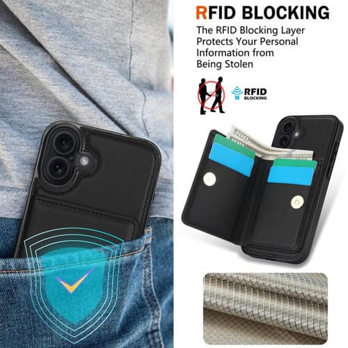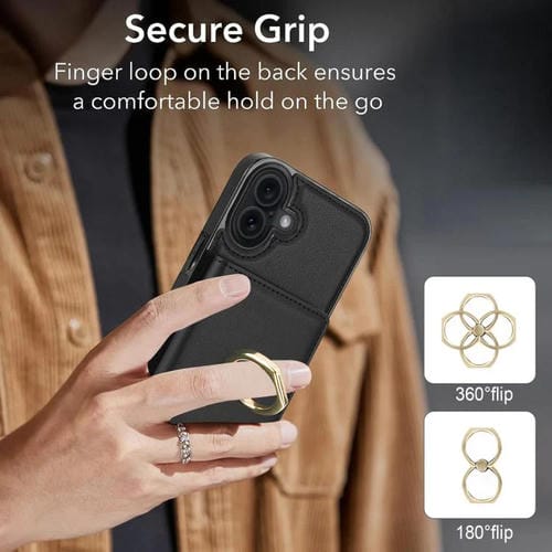 Funda antirrobo RFID para iPhone 17 con anillo para tarjetas (negra)