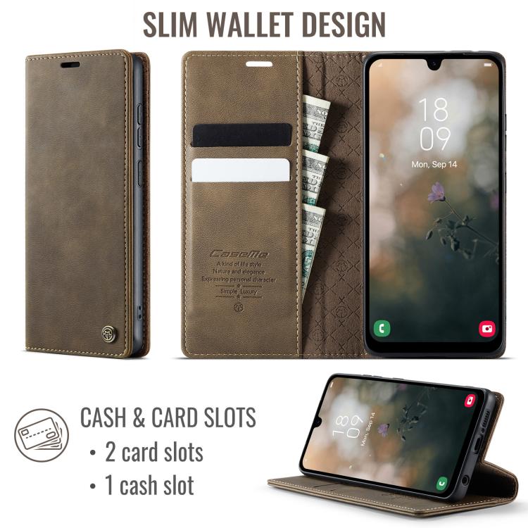 Funda CaseMe 033 para Samsung Galaxy A50s/A30s, forro de piel de becerro, microfibra y bloqueo RFID (café)