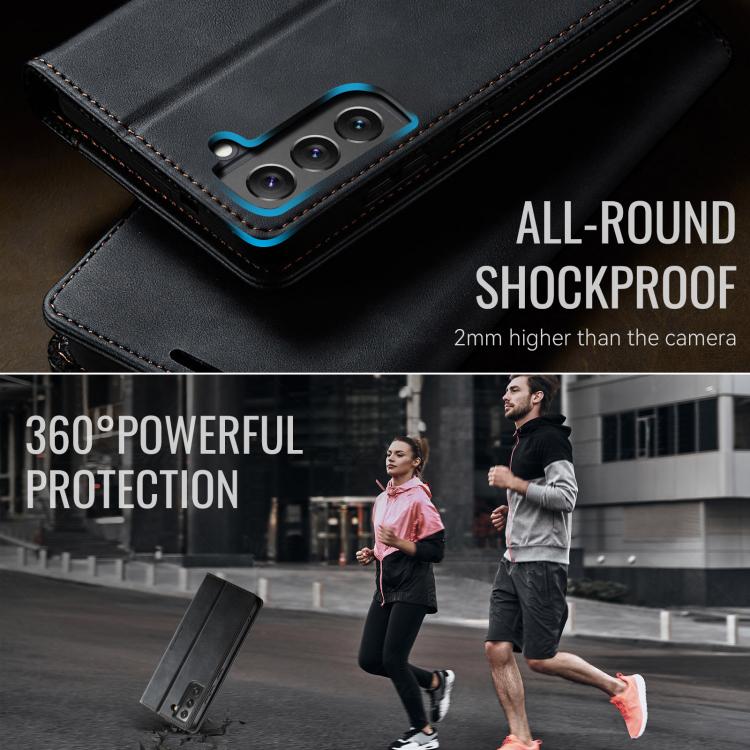 Funda CaseMe 033 para Samsung Galaxy S22 5G, forro de piel de becerro, microfibra, con bloqueo RFID (negra)