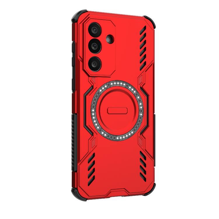 Funda con anillo magnético MagSafe y mariposa para Samsung Galaxy M56 5G, a prueba de golpes (roja)