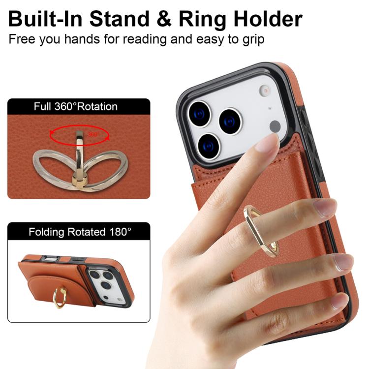 Funda con tarjetero y anillo para iPhone 17 Pro, con tacto de piel (marrón)