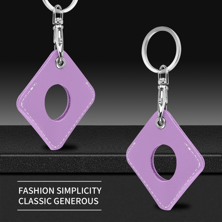Funda Cuadrada Cuero AirTag a Prueba de Golpes Anti-Arañaduras con Llavero (Púrpura)
