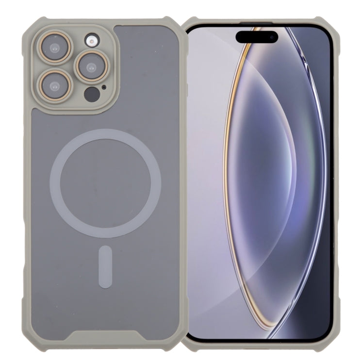 Funda de Acrílico y TPU con Bocina Magnética Magsafe para iPhone 16 Pro con Película de Lente Dos Colores (Gris)