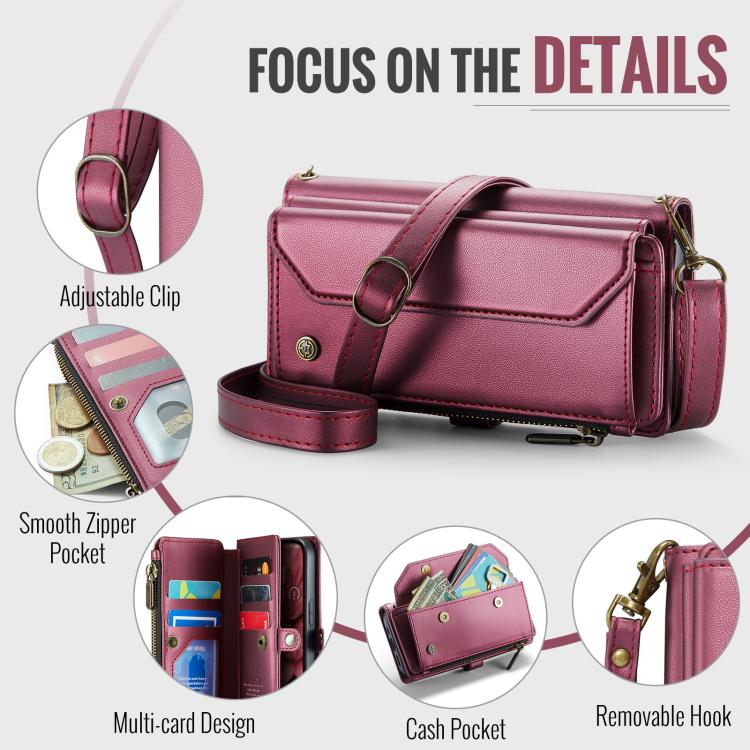 Funda para iPhone 16E Caseme C36 Cuero Antirrobo con Ranuras para Tarjetas y Cremallera (Rojo)