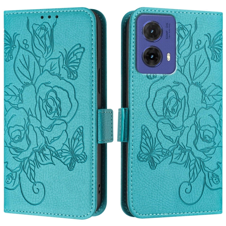 Funda de Cuero Antirrobo con Rfid para Motorola Moto G85 5G con Relieve (Azul Claro)