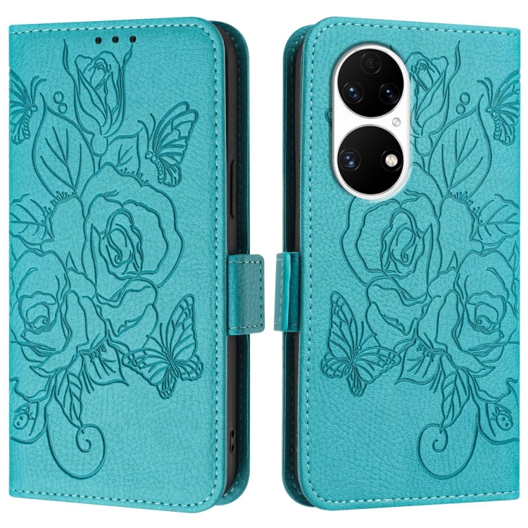 Funda de Cuero Antirrobo con RFID para Huawei P50 Pro (Azul Claro) Diseño en Relieve