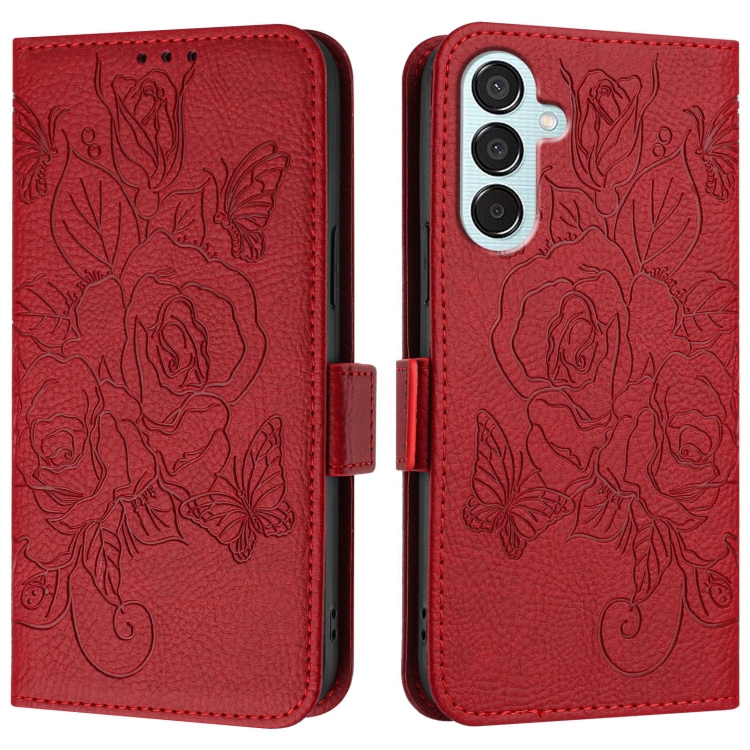 Funda de Cuero Antirrobo con Rfid y Relieve Global para Samsung Galaxy M15 5G/F15 5G (Roja)