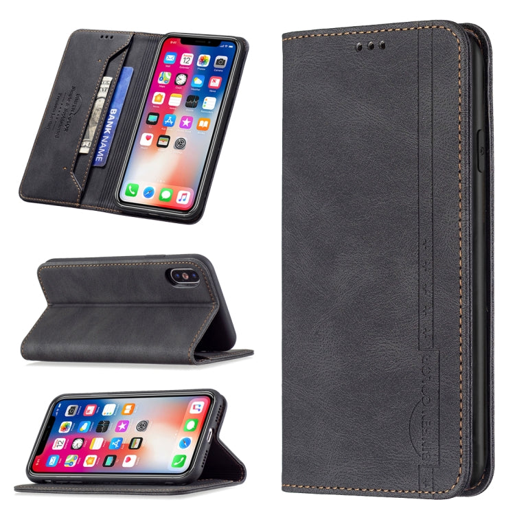 Funda de Cuero Antirrobo Bloqueo Rfid Magnético con Soporte Ranuras Tarjetas Billetera para iPhone X / Xs (Negro)