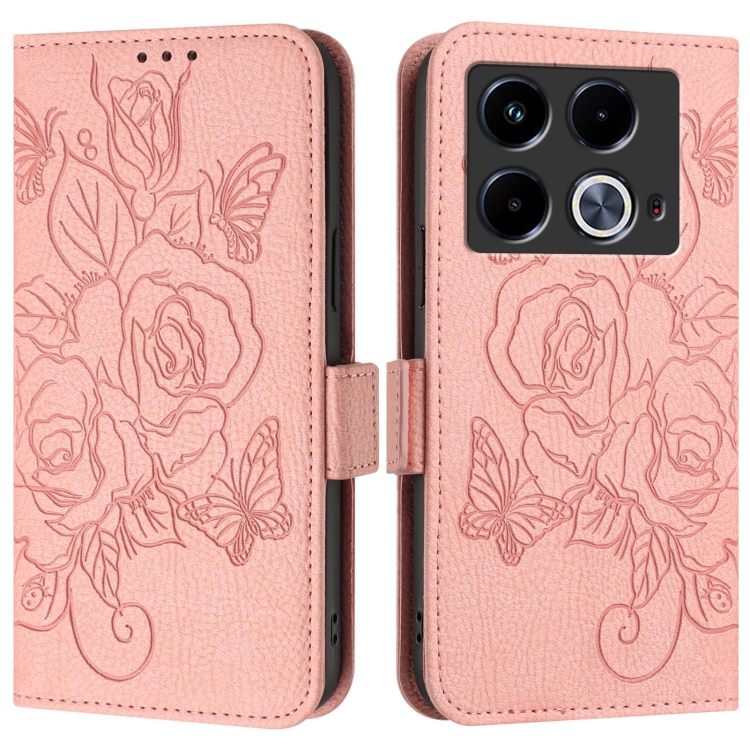 Funda de Cuero Antirrobo RFID con Relieve para Infinix Note 40 4G (Rosa)