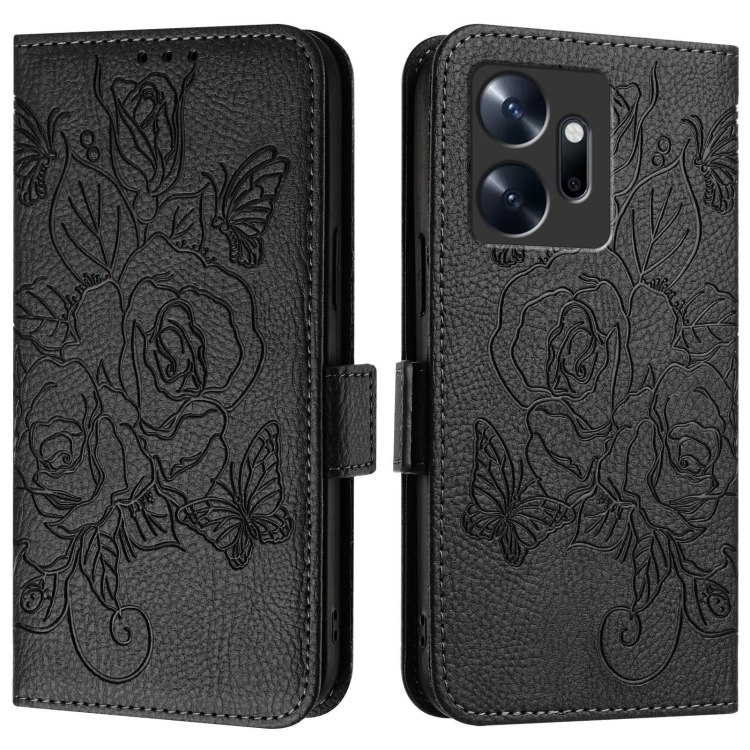 Funda de Cuero Antirrobo RFID con Relieve para Infinix Zero 20 (Negra)