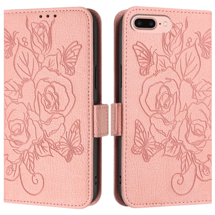 Funda de Cuero Antirrobo RFID con Relieve para iPhone 8 Plus/7 Plus (Rosa)