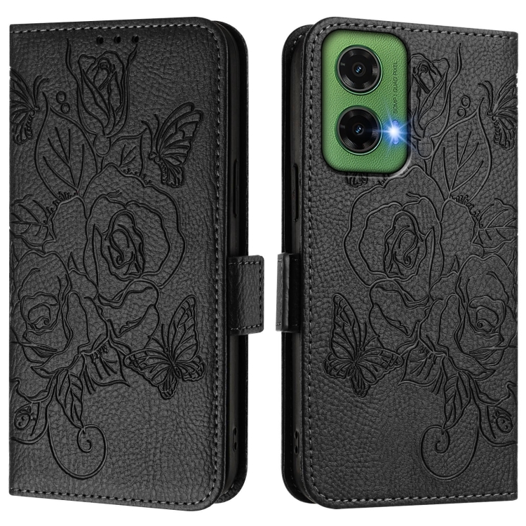 Funda de Cuero Antirrobo RFID con Relieve para Motorola Moto G35 (Negra)