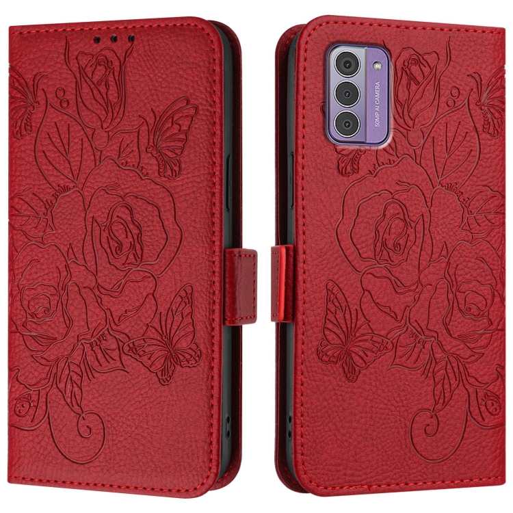 Funda de Cuero Antirrobo RFID con Relieve para Nokia G42/G310 (Roja)