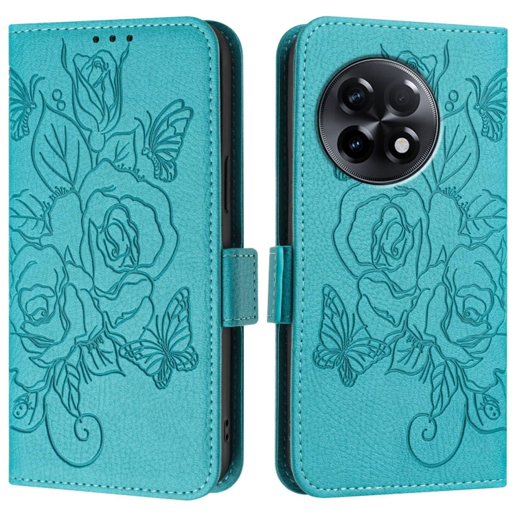 Funda de Cuero Antirrobo RFID con Relieve para OnePlus 11R 5G (Azul Claro)