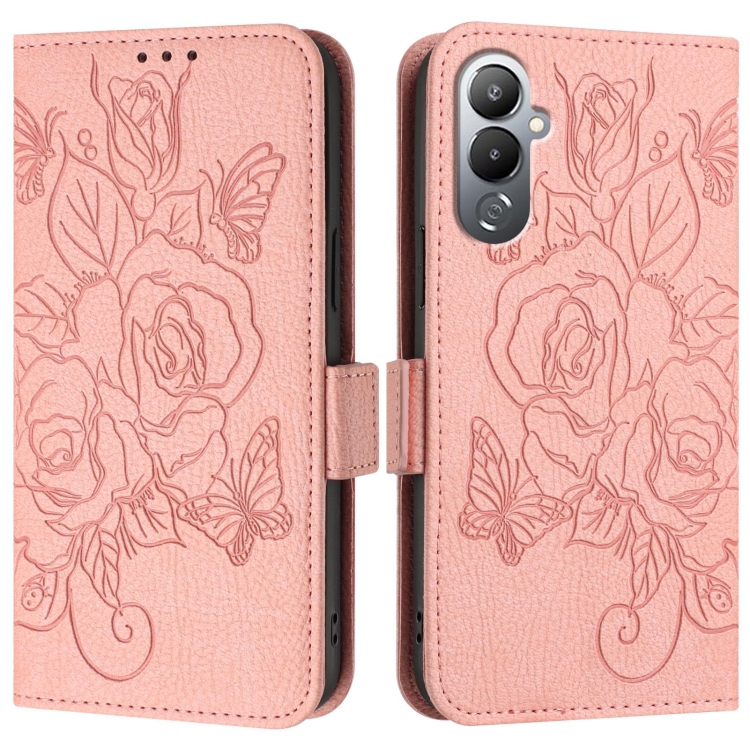 Funda de Cuero Antirrobo RFID con Relieve para Tecno Pova 4 (Rosa)