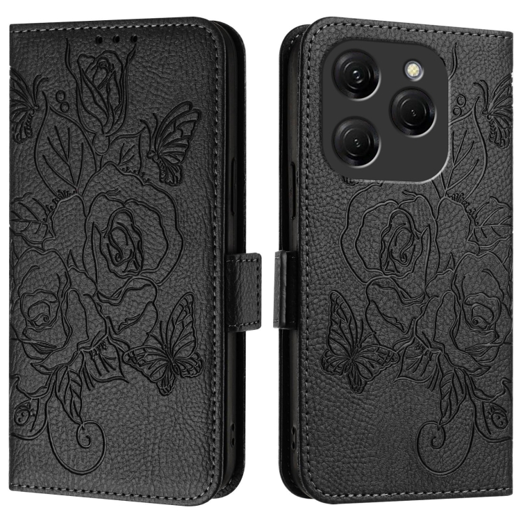 Funda de Cuero Antirrobo RFID con Relieve para Tecno Spark 20 Pro (Negra)