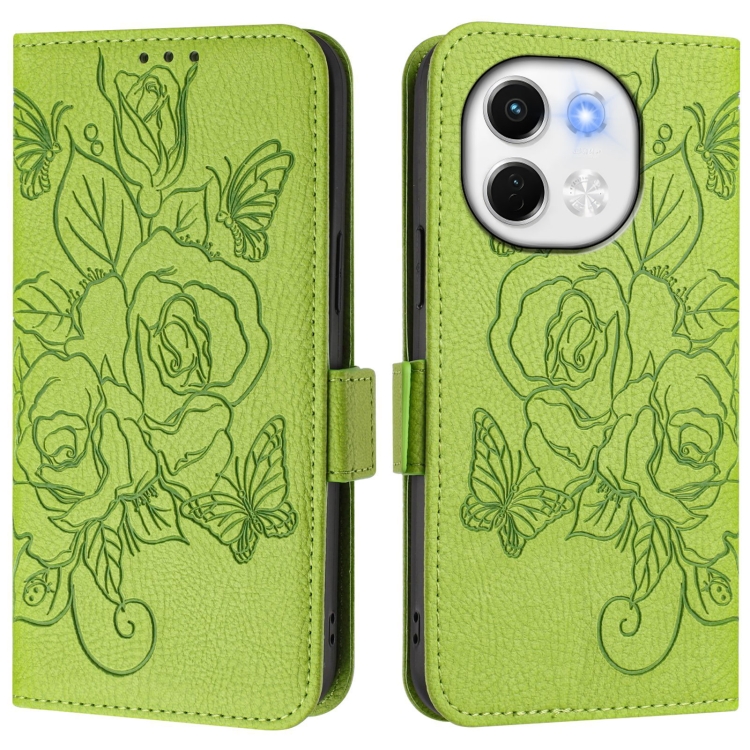 Funda de Cuero Antirrobo RFID con Relieve para Tecno Spark 30 5G (Verde)