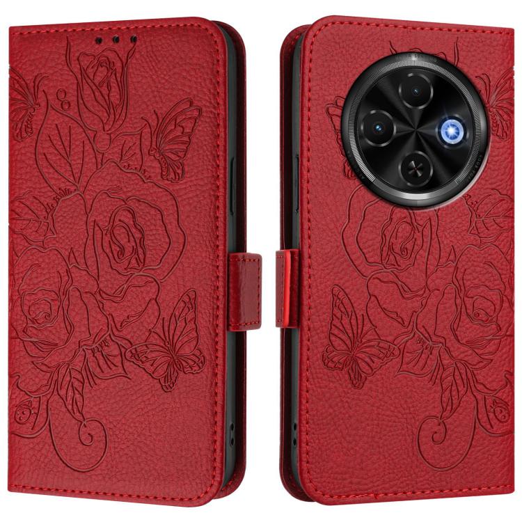 Funda de Cuero Antirrobo RFID con Relieve para Tecno Spark 30C 5G y Pop 9 5G (Rojo)