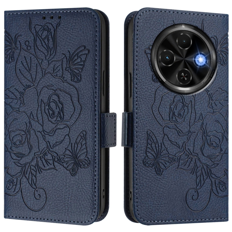 Funda de Cuero Antirrobo RFID con Relieve para Tecno Spark 30C (Azul Oscuro)