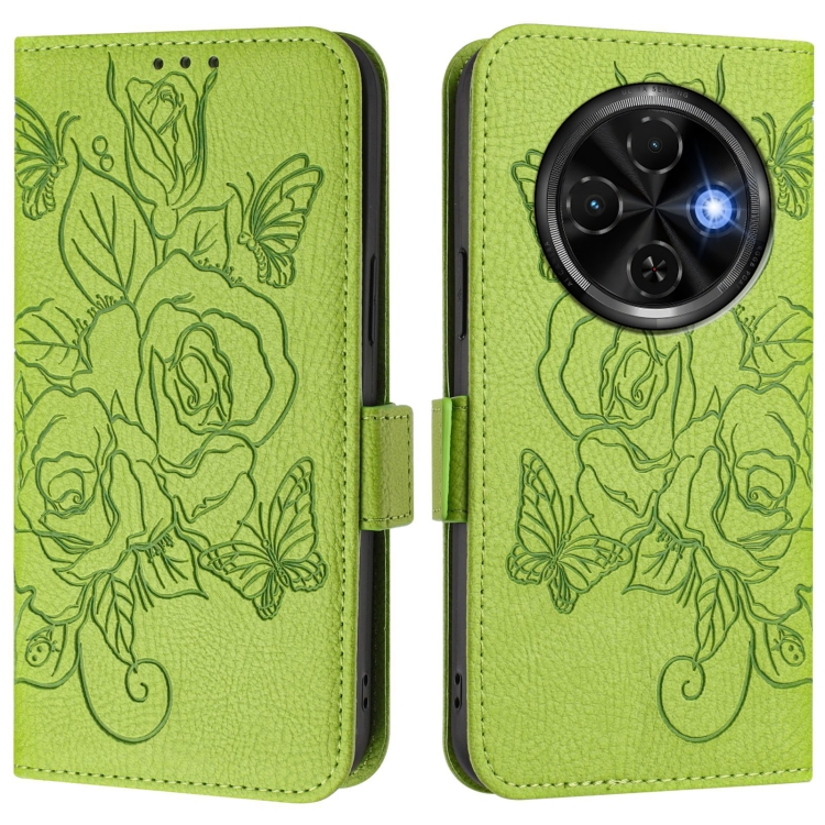 Funda de Cuero Antirrobo RFID con Relieve para Tecno Spark 30C (Verde)