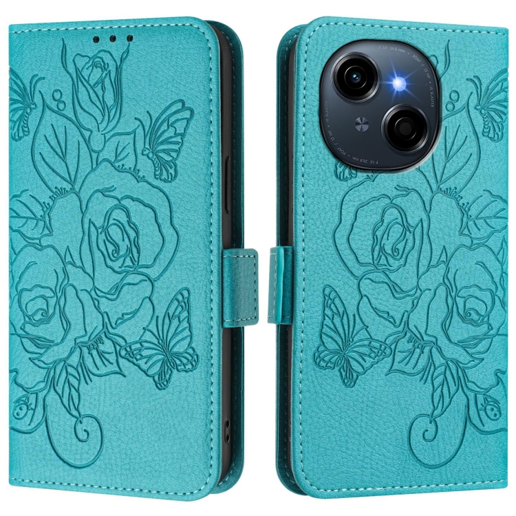 Funda de Cuero Antirrobo RFID con Relieve para Tecno Spark Go 1 y Spark Go 2025 (Azul Claro)