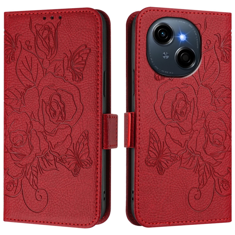 Funda de Cuero Antirrobo RFID con Relieve para Tecno Spark Go 1/Spark Go 2025 (Roja)