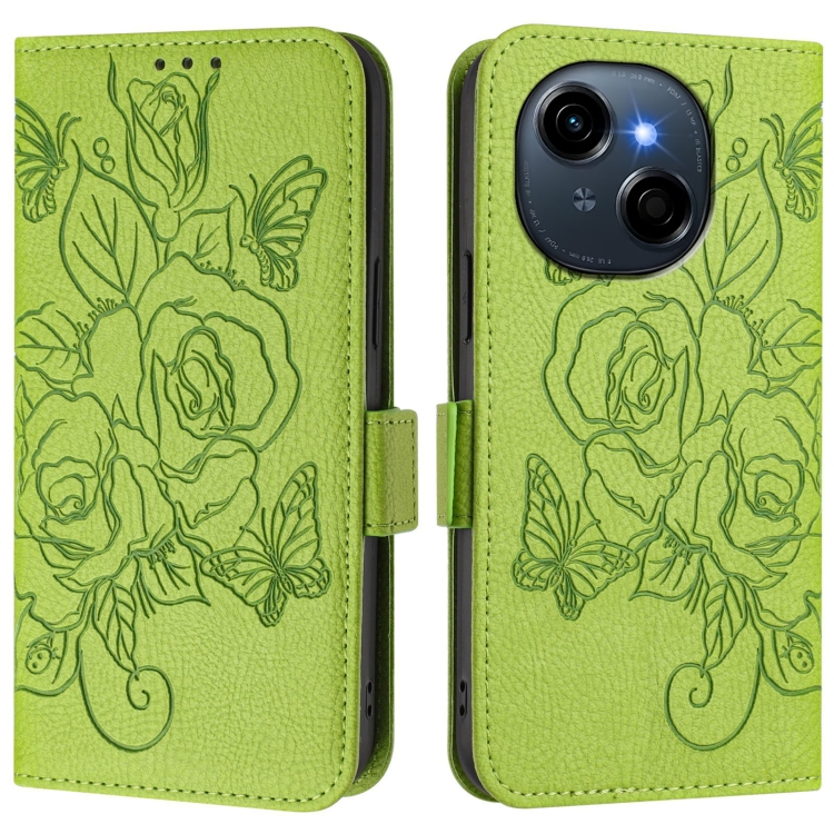 Funda de Cuero Antirrobo RFID con Relieve para Tecno Spark Go 1 y Spark Go 2025 (Verde)