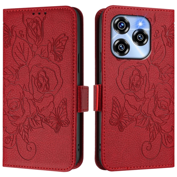 Funda de Cuero Antirrobo RFID con Relieve para Teléfono Oukitel C50 (Rojo)