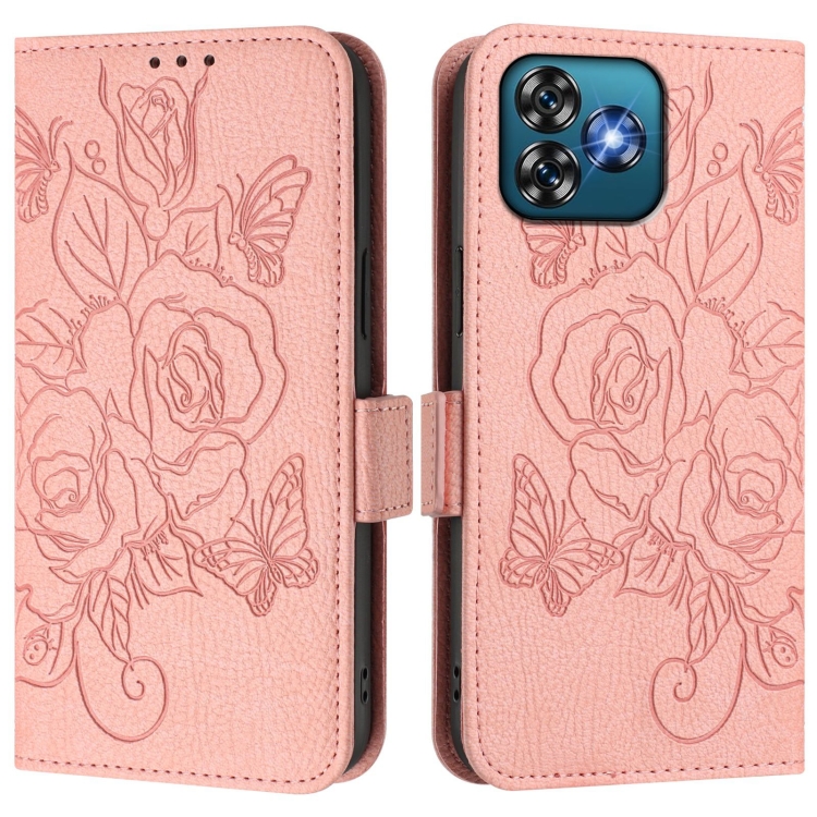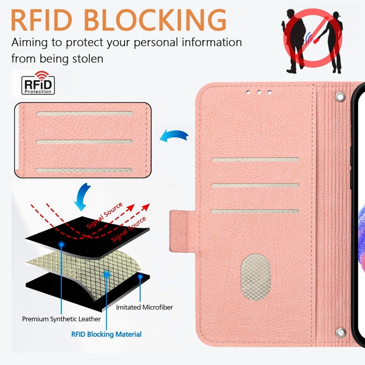 Funda de Cuero Antirrobo RFID con Relieve para Teléfono Oukitel C53 (Rosa)