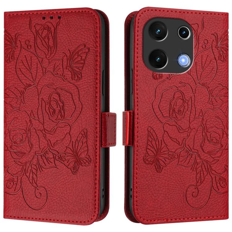 Funda de Cuero Antirrobo RFID con Relieve para Umidigi Note 100 (Rojo)