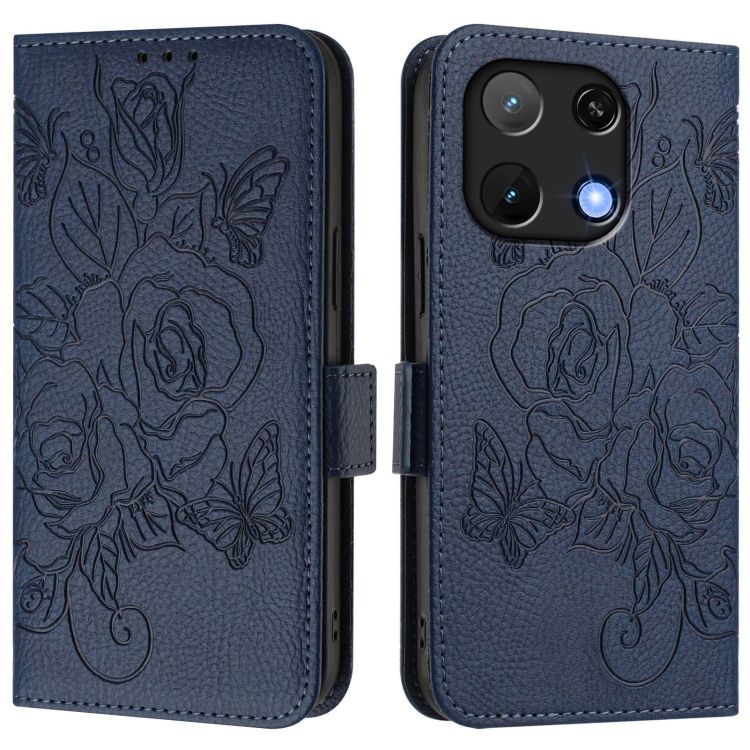 Funda de Cuero Antirrobo RFID con Relieve para Umidigi Note 90 (Azul Oscuro)
