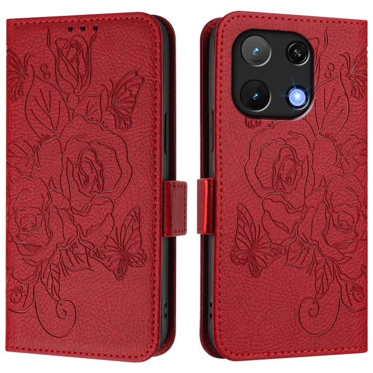 Funda de Cuero Antirrobo RFID con Relieve para Umidigi Note 90 (Rojo)