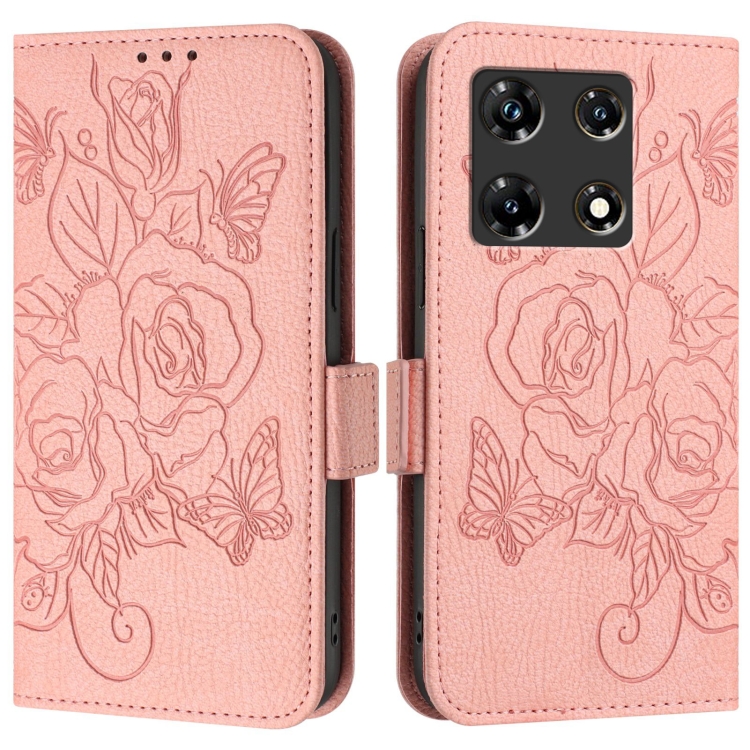 Funda de Cuero Antirrobo RFID con Relieve para Infinix Note 30 Pro y Note 30 5G (Rosa)