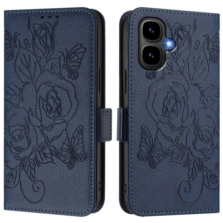 Funda de cuero antirrobo RFID con relieve rosa para Tecno Pop 10 / Infinix Smart 10 4G (azul oscuro)