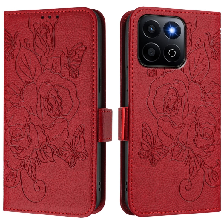 Funda de Cuero Antirrobo RFID con Relieve Rosa para Honor 200 5G (Rojo)