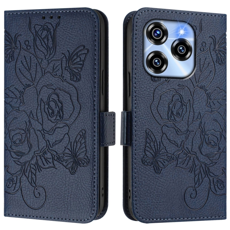 Funda Cuero Antirrobo RFID con Relieve Rosa para Oukitel C50 (Azul Oscuro)
