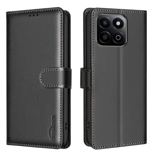 Funda de Cuero Antirrobo RFID con Textura de Lichi para Honor 200 Smart/X7C (Negra)