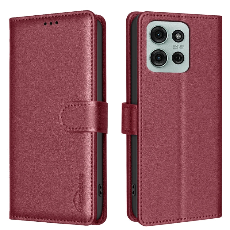 Funda de Cuero Antirrobo RFID con Textura Litchi para Motorola Moto G75 5G (Rojo)