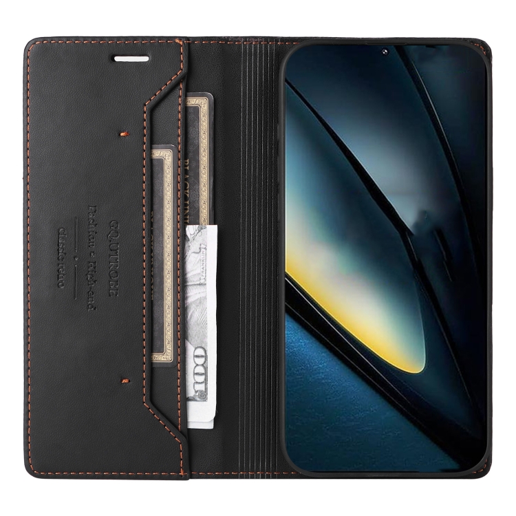 Funda de Cuero Antirrobo Rfid para Teléfono Xiaomi Poco F6 Gqutrobe G01 (Negra)
