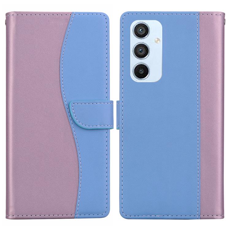 Funda de cuero bicolor con relieve para Samsung Galaxy A54 5G (rosa y azul)