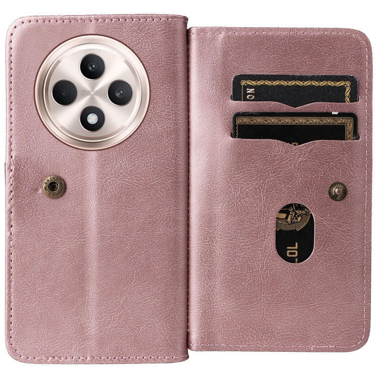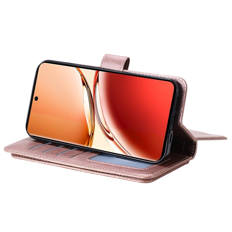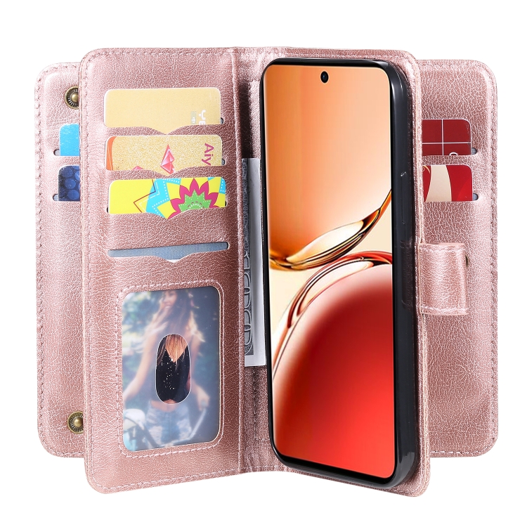 Funda de Cuero con 10 Ranuras para Tarjetas y Billetera Multifunción Global para Oppo Reno12 F 5G (Oro Rosa)