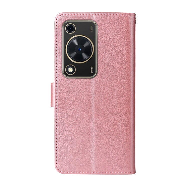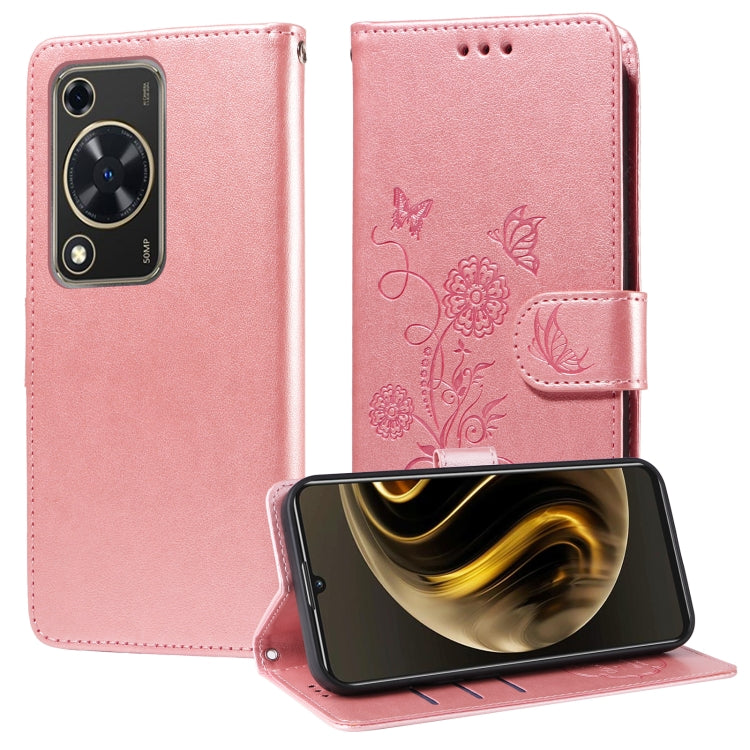 Funda de Cuero Huawei Nova Y72 4G Enjoy con 70 Flores de Mariposa en Relieve (Oro Rosa)