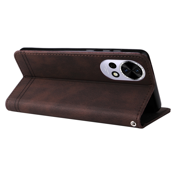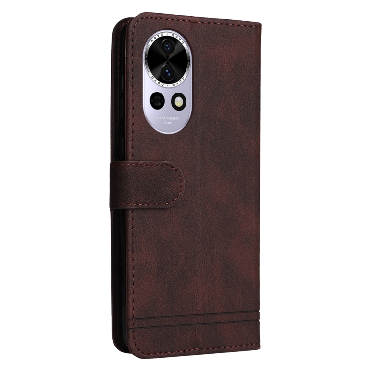 Funda de Cuero con Botones de Metal y Diseño Árbol de la Vida para Huawei Nova 13/Nova 12 (Marrón)