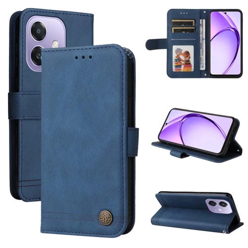Funda de Cuero con Botones de Metal y Diseño de Árbol de la Vida para Oppo A3X 4G/A3X 5G (Azul)